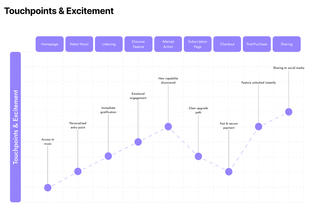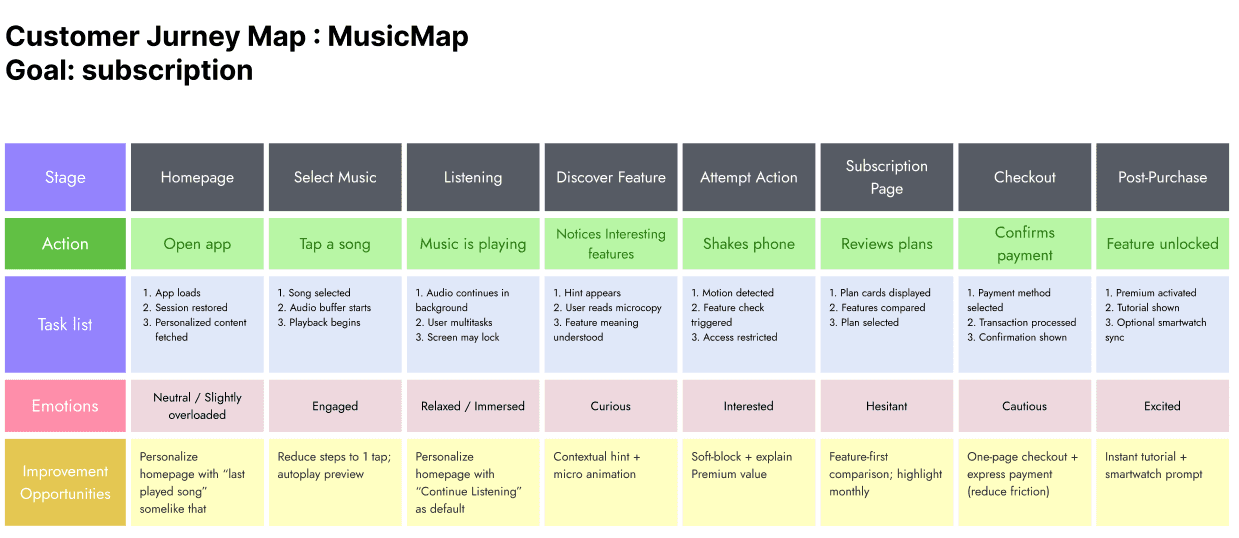 To validate decisions beyond visuals, I created a user journey map focusing on: