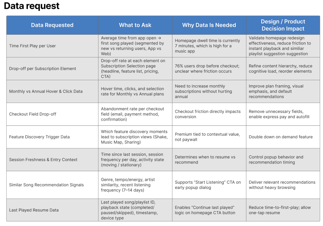 Analytics showed users spend ~7 minutes on the homepage before playing music.