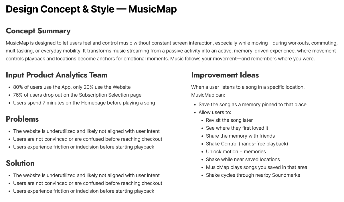 Music streaming is deeply embedded in users’ daily activities—commuting, running, traveling, or relaxing. However, most music apps still assume users are stationary and able to interact with their screens frequently.